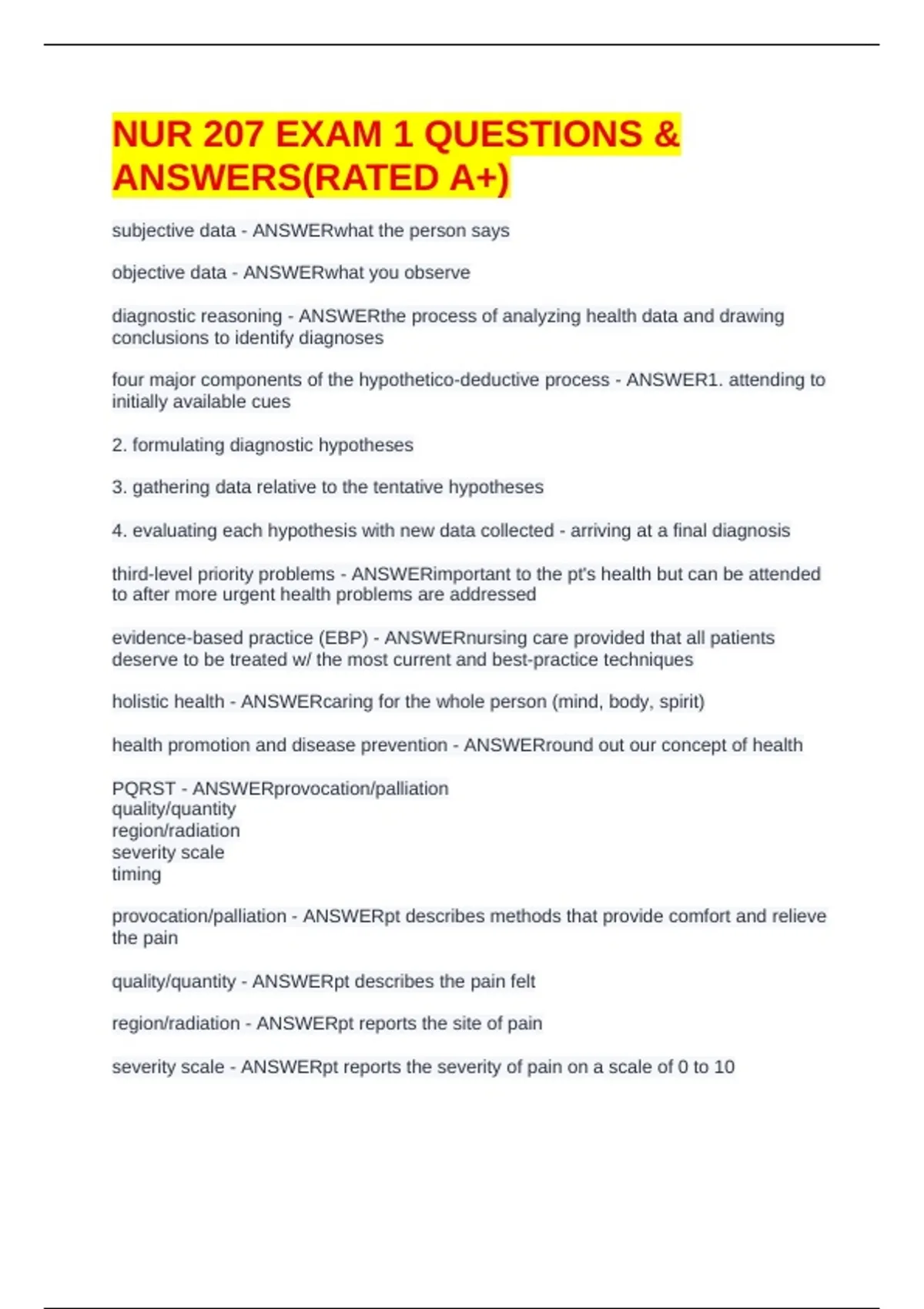 NUR 207 EXAM 1 QUESTIONS & ANSWERS(RATED A+)