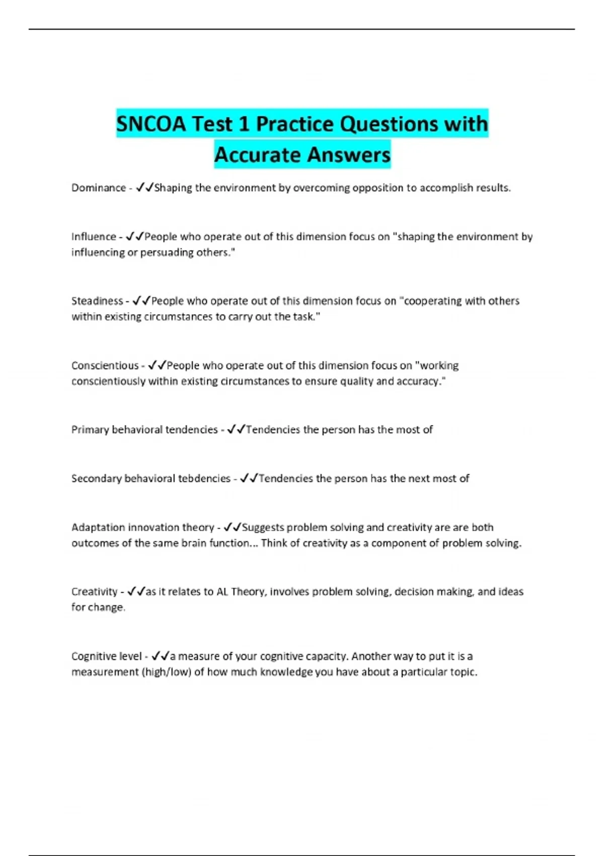 SNCOA Test 1 Practice Questions with Accurate Answers