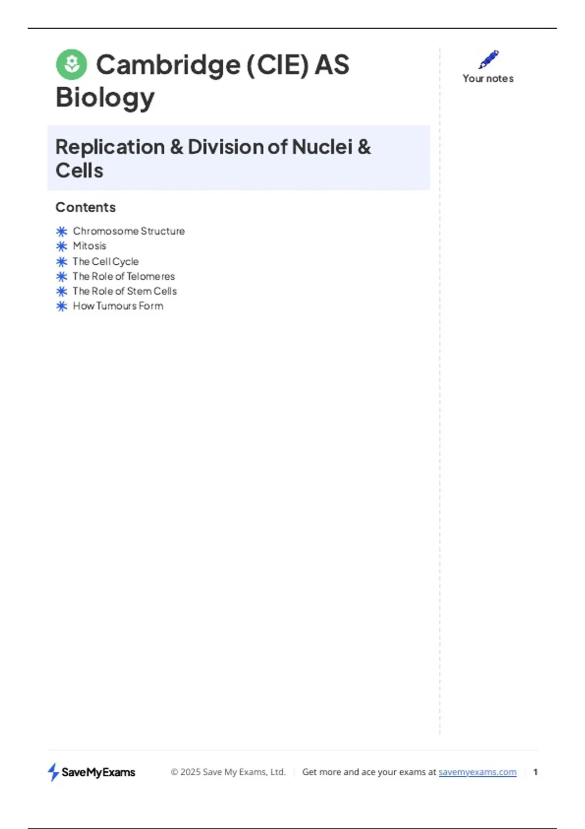 CAIE A-Level Biology Notes — Topic 5: The Mitotic Cell Cycle (9700) | Mitosis Illustrated
