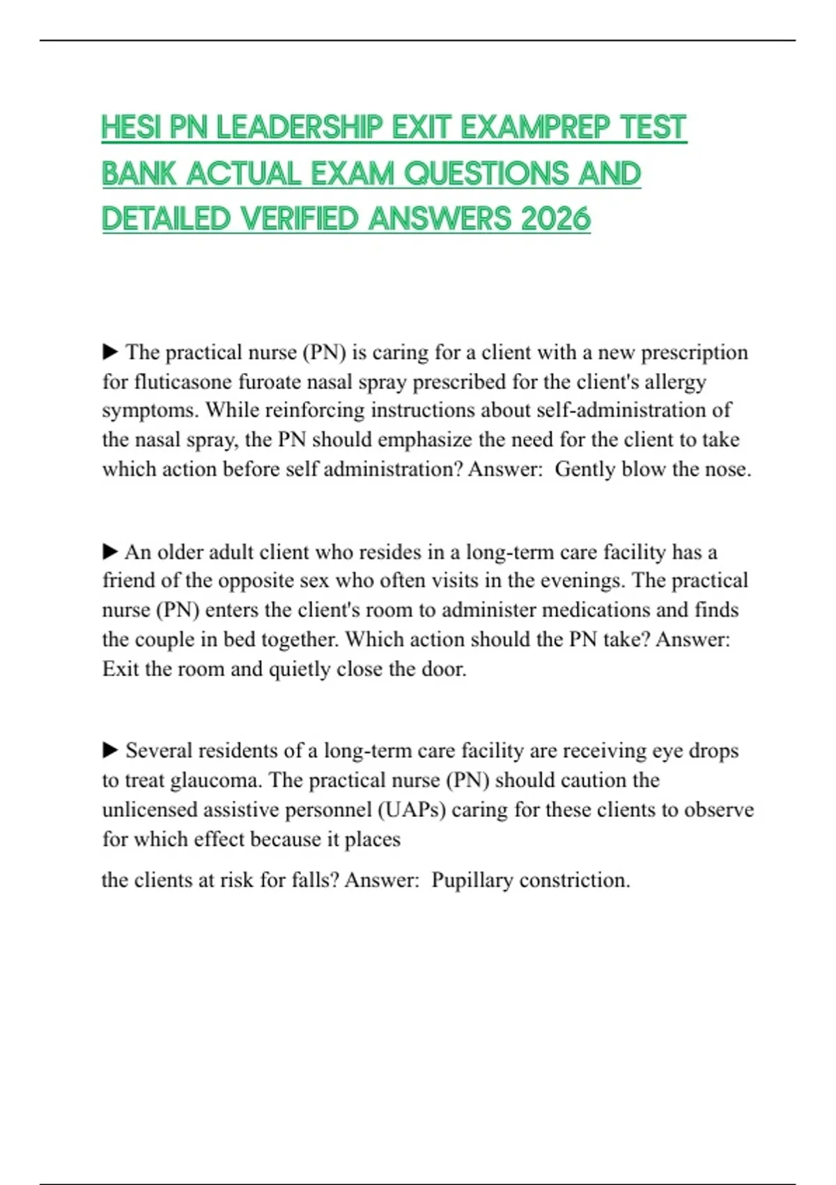 HESI PN LEADERSHIP EXIT EXAMPREP TEST BANK ACTUAL EXAM QUESTIONS AND DETAILED VERIFIED ANSWERS 2026
