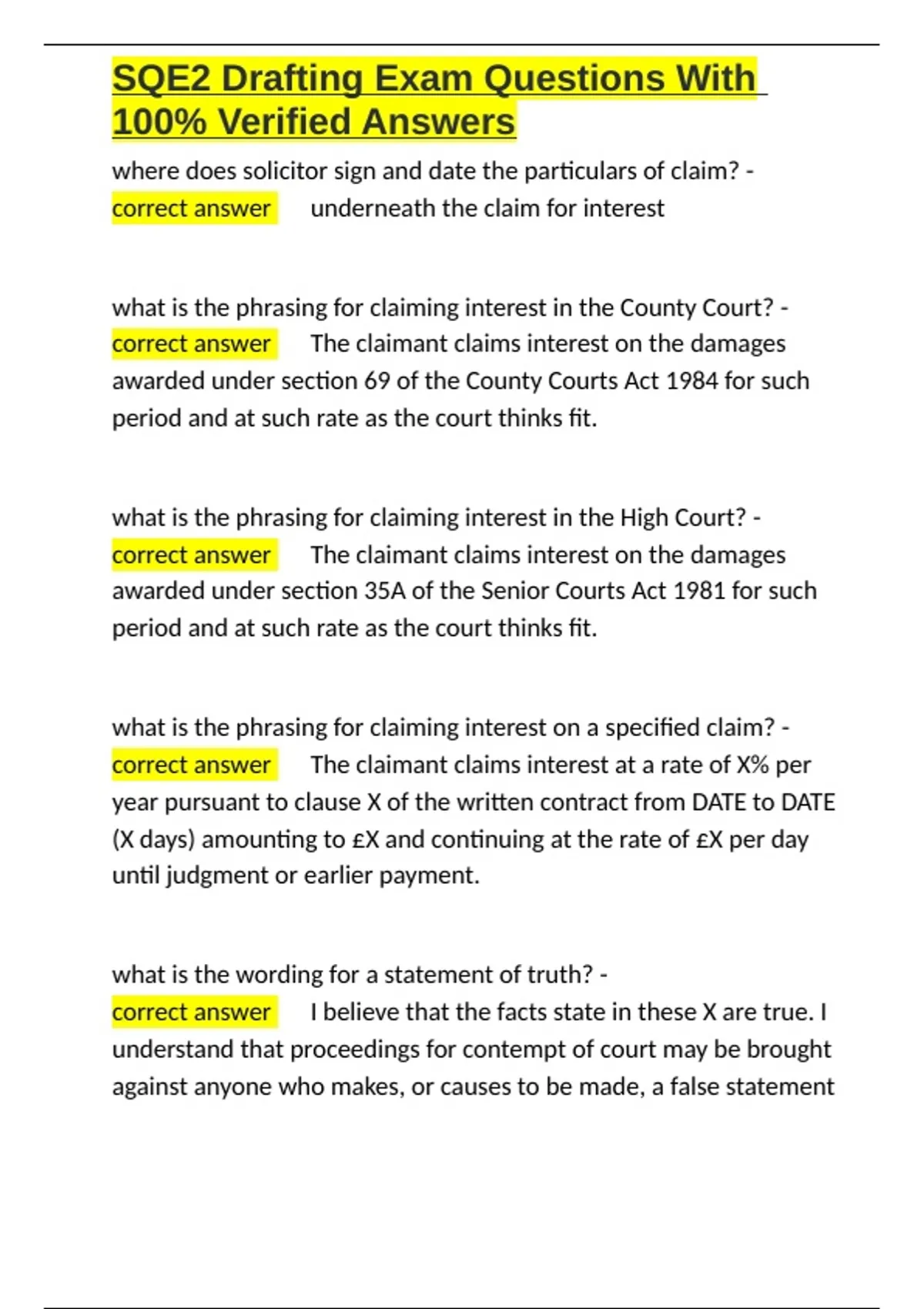 ,SQE2 Drafting Exam Questions With