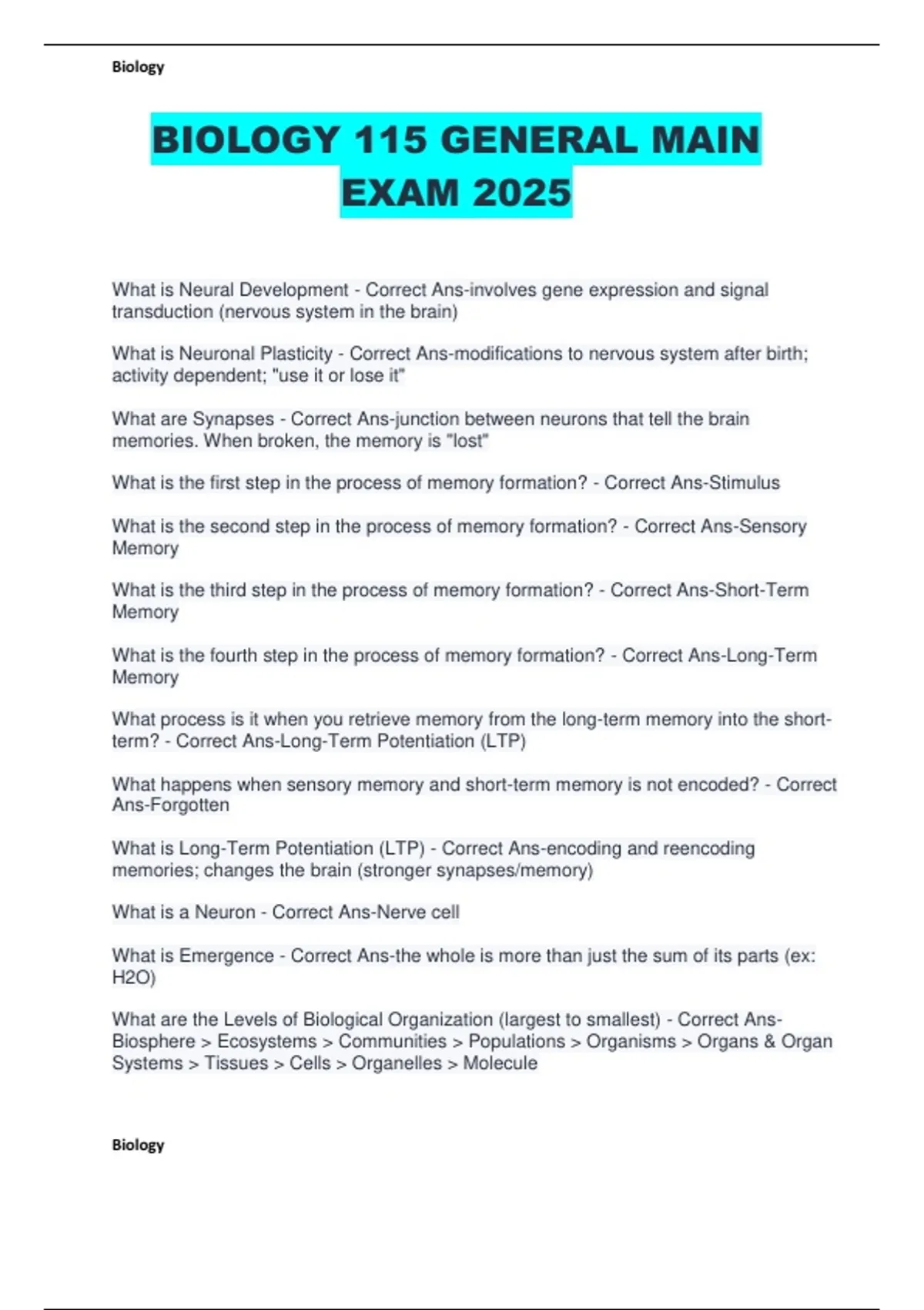 BIOLOGY 115 GENERAL MAIN