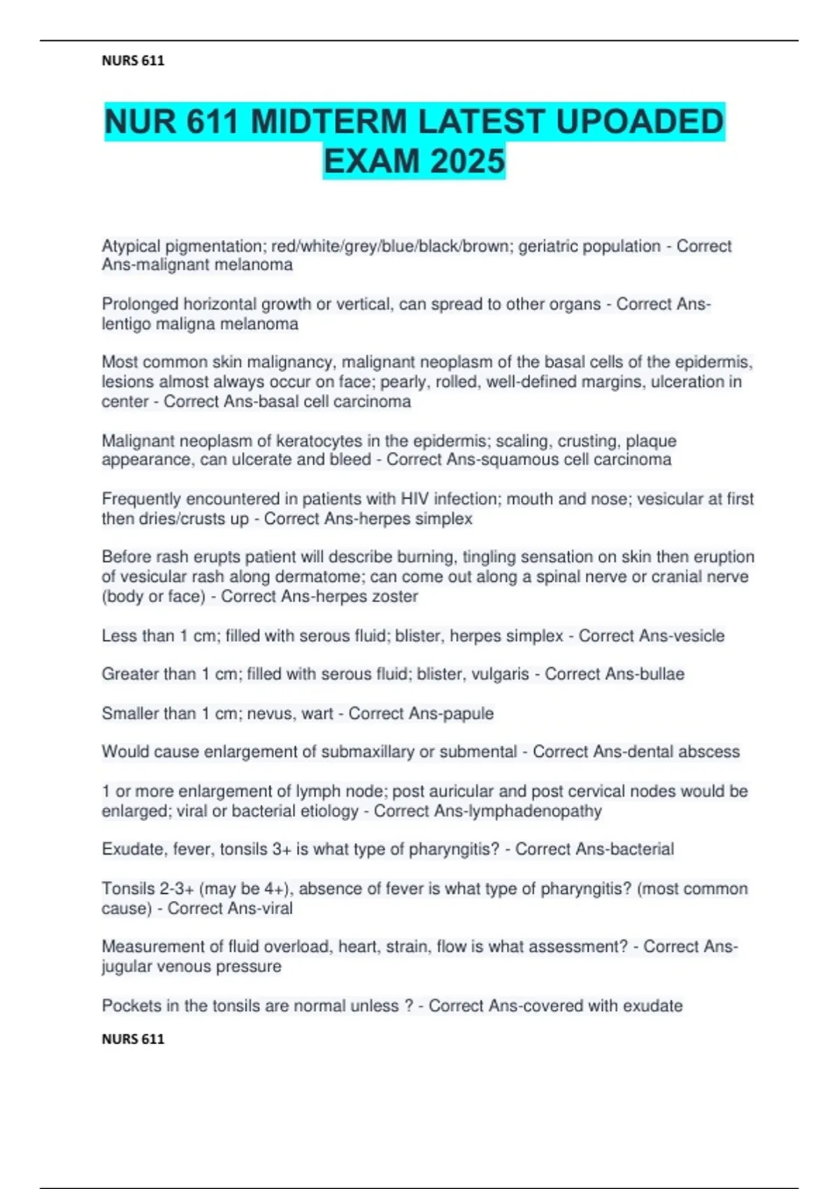 NUR 611 MIDTERM LATEST UPOADED