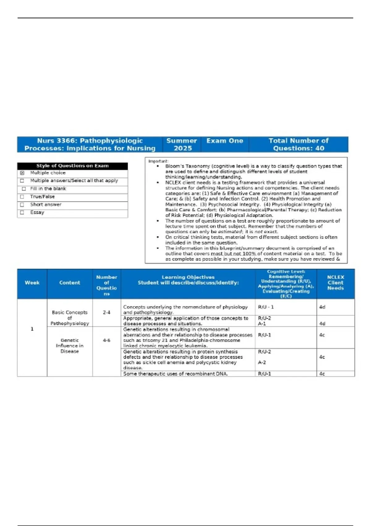 NURS 3366 AO Exam 1 Blueprint and Content Summary | Fall 2025/26 Update with complete solutions -UTA.