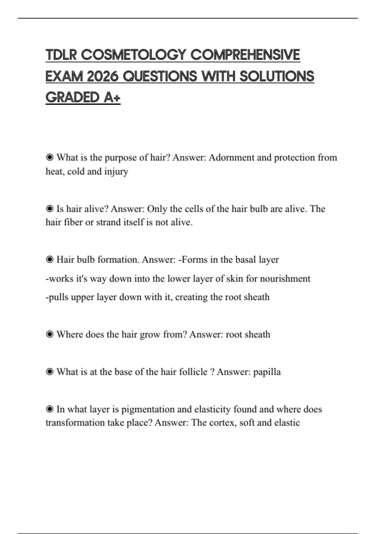 TDLR COSMETOLOGY COMPREHENSIVE EXAM 2026 QUESTIONS WITH SOLUTIONS GRADED A+