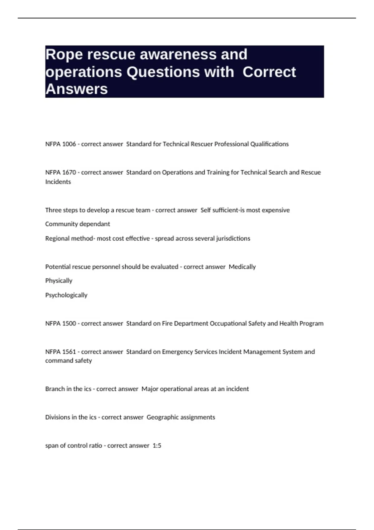 NFPA 1006 - correct answer Standard for Technical Rescuer Professional Qualifications