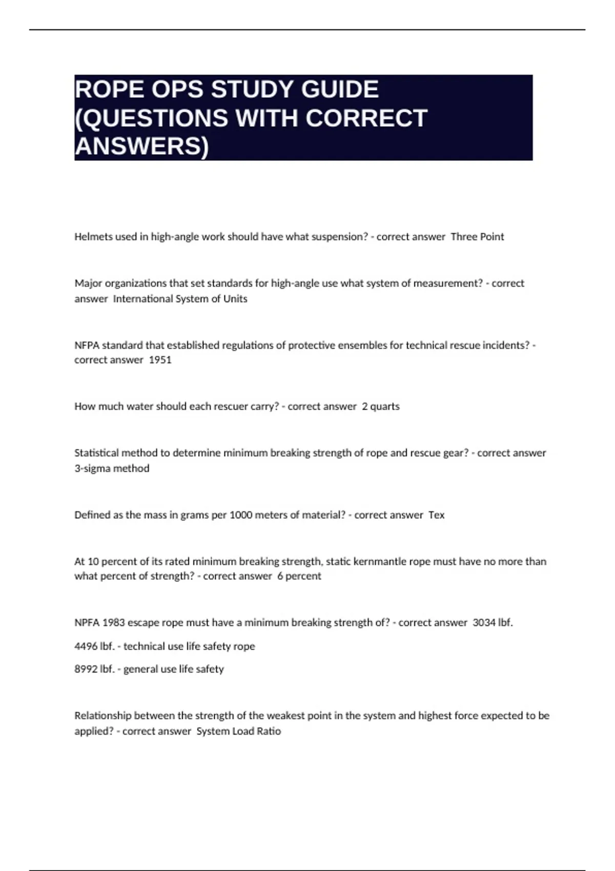 ROPE OPS STUDY GUIDE (QUESTIONS WITH CORRECT ANSWERS
