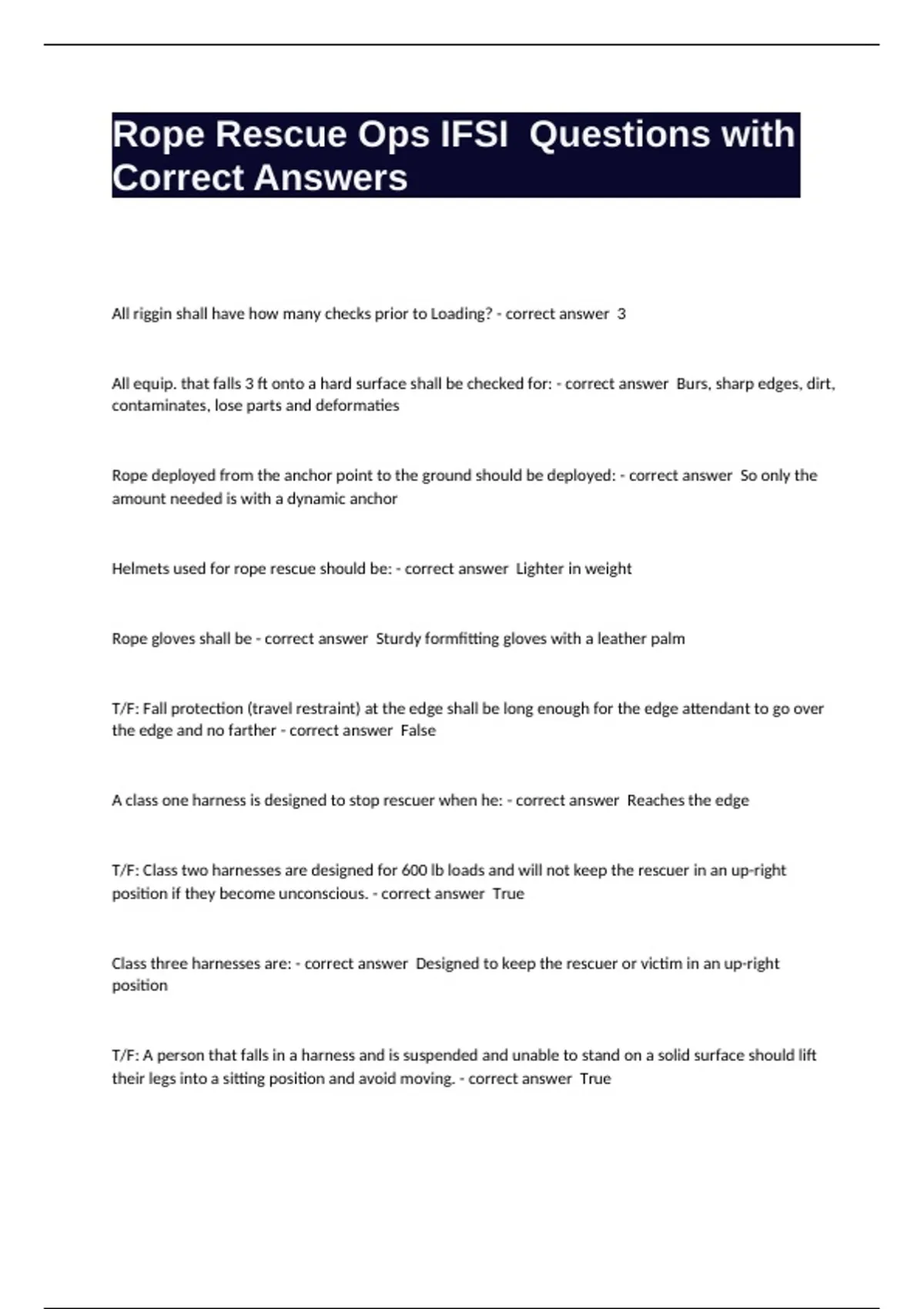Rope Rescue Ops IFSI Questions with Correct Answer