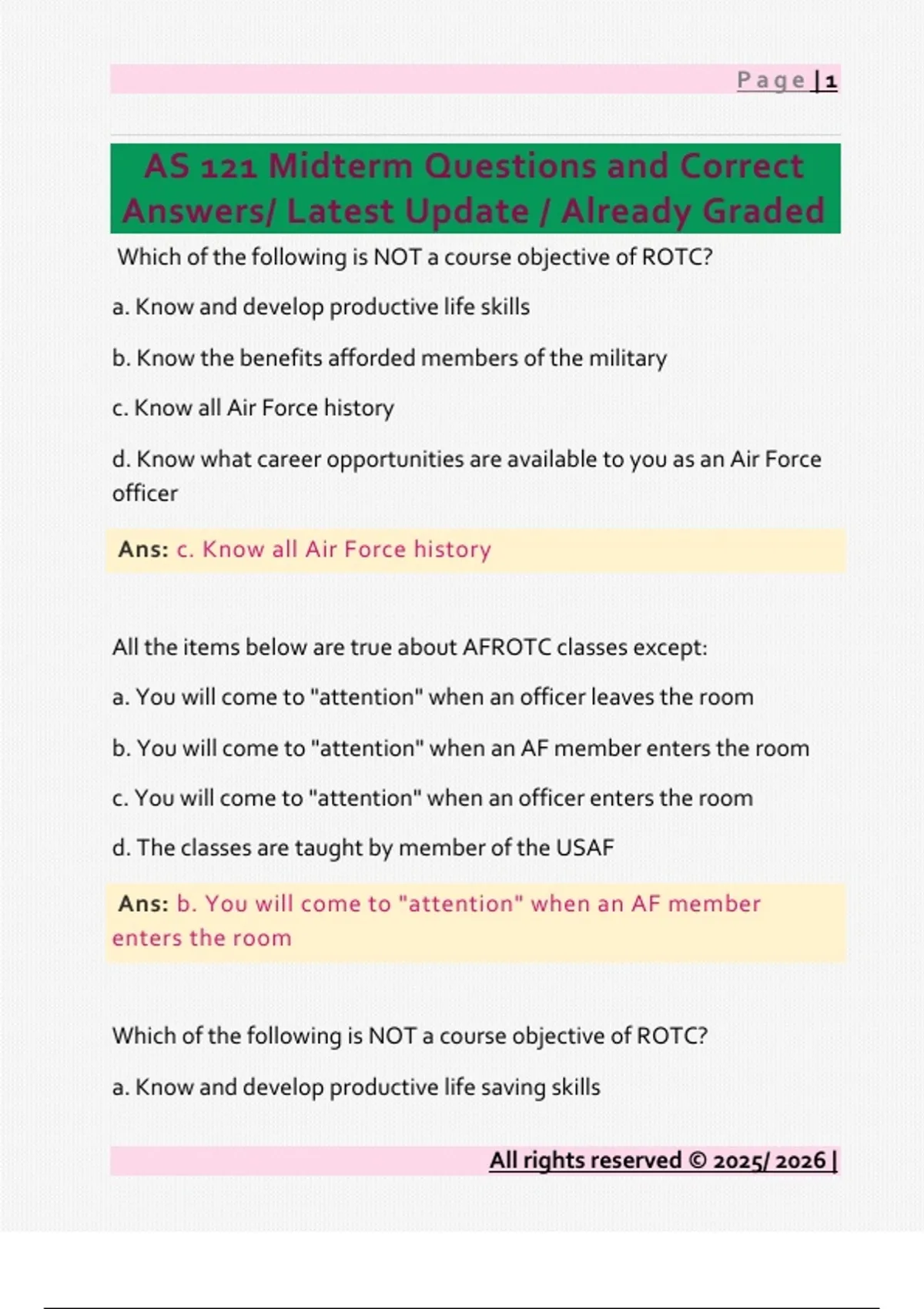 AS 121 Midterm Questions and Correct