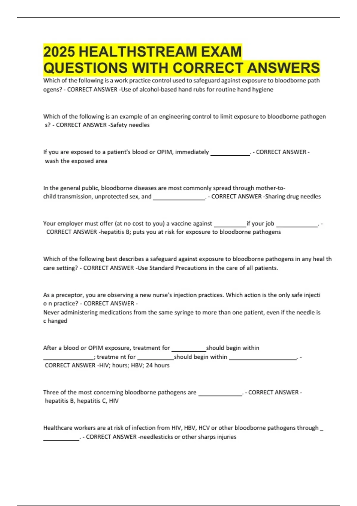 2025 HEALTHSTREAM EXAM QUESTIONS WITH CORRECT ANSWERS.