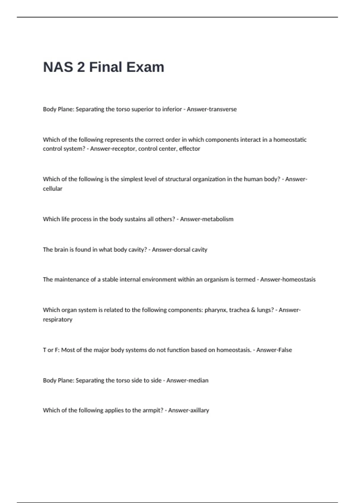 NAS 2 Final Exam Questions and Answers