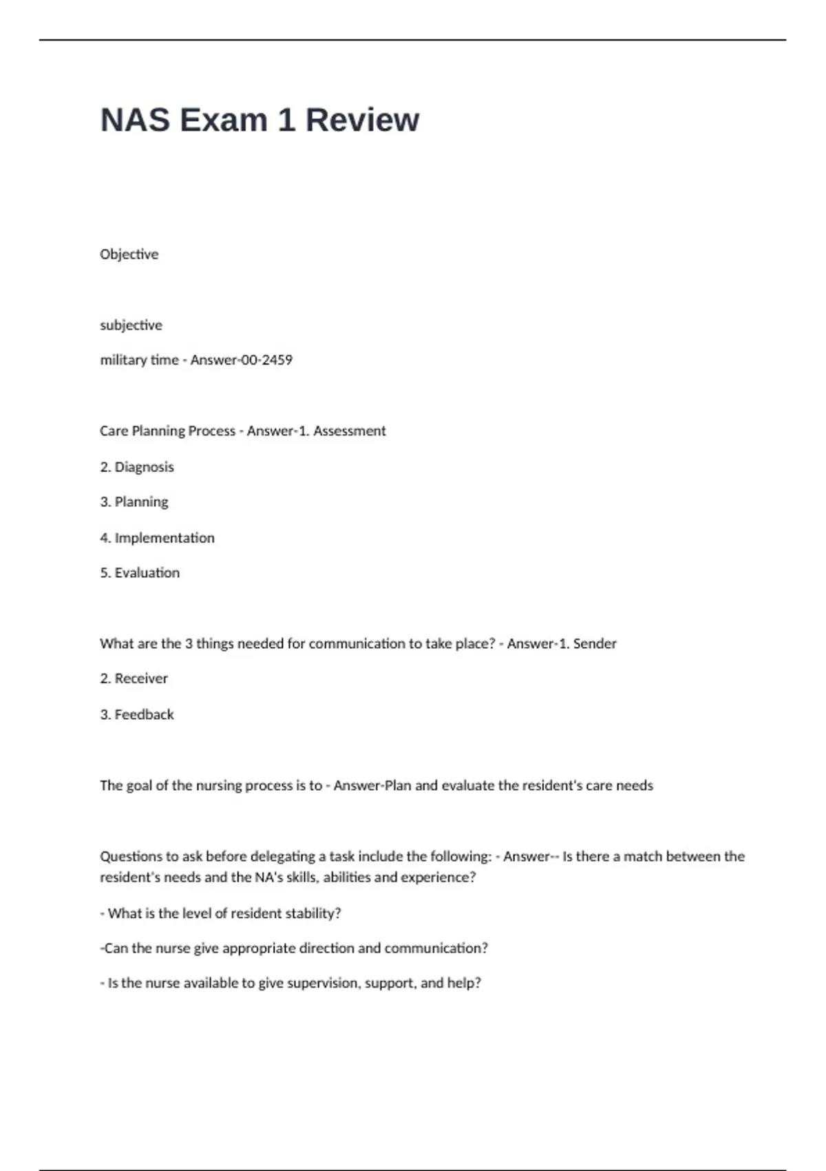NAS Exam 1 Review Questions and Answers