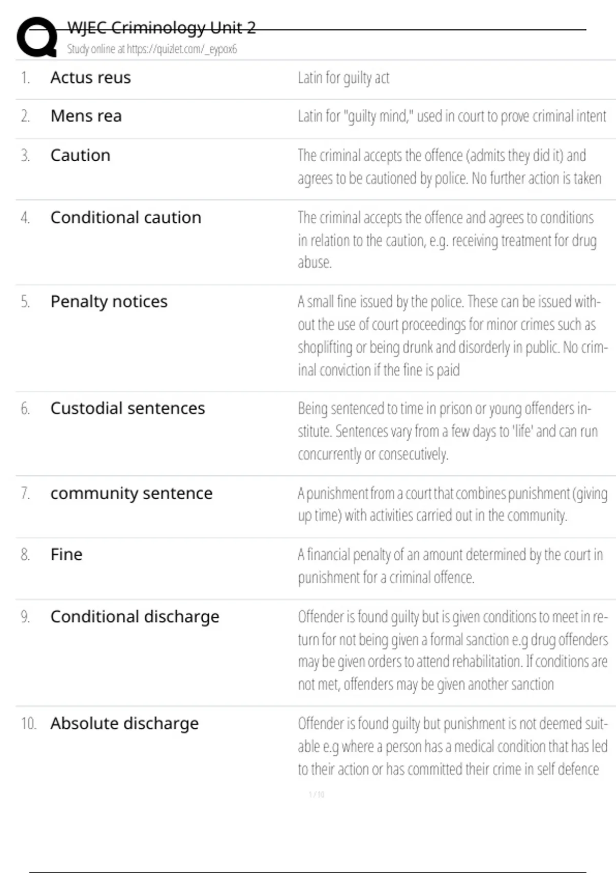 9. Conditional discharge Offender is found guilty but is given conditions to meet in re-