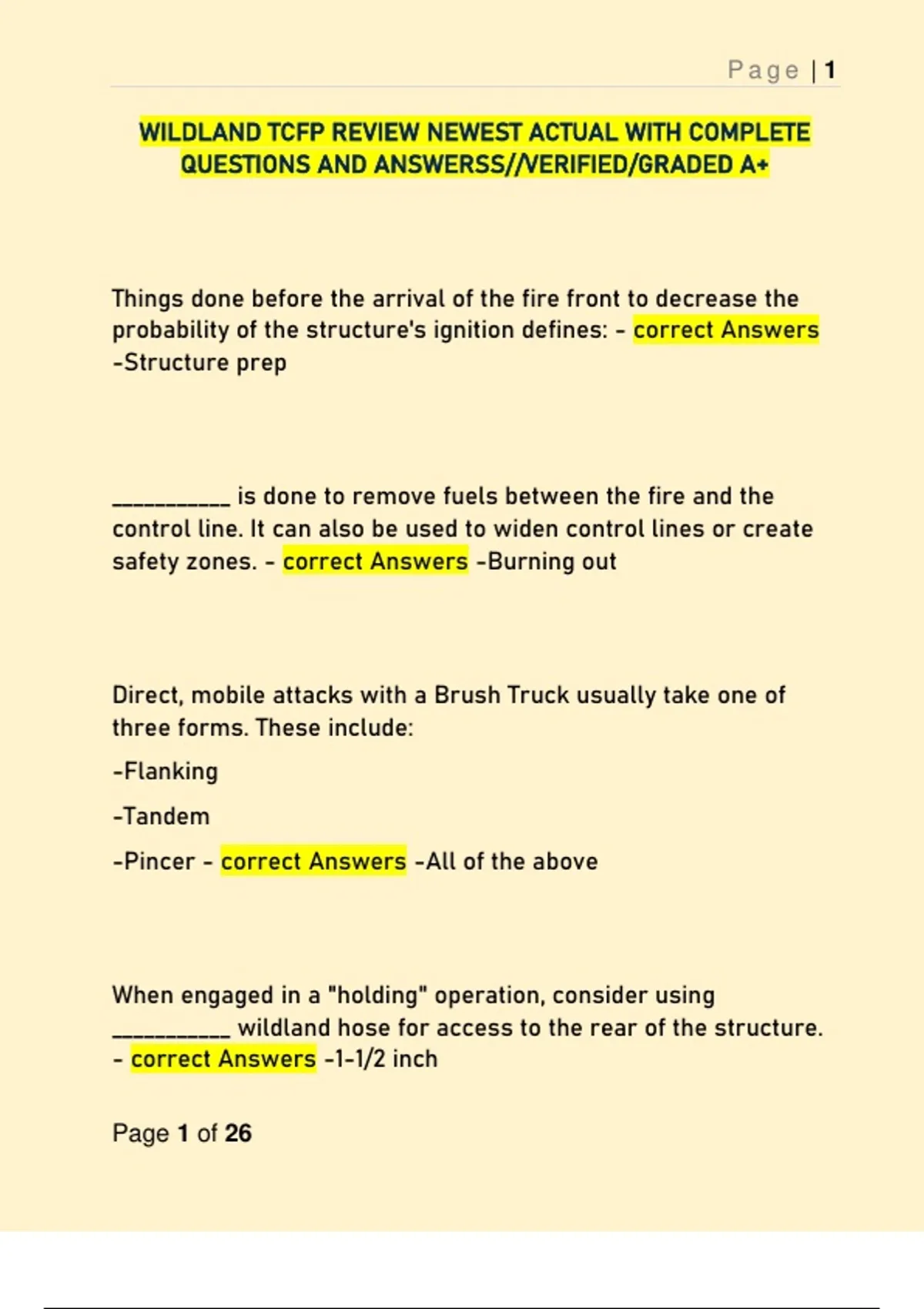 WILDLAND TCFP REVIEW NEWEST ACTUAL WITH COMPLETE QUESTIONS AND ANSWERSS//VERIFIED/GRADED A+