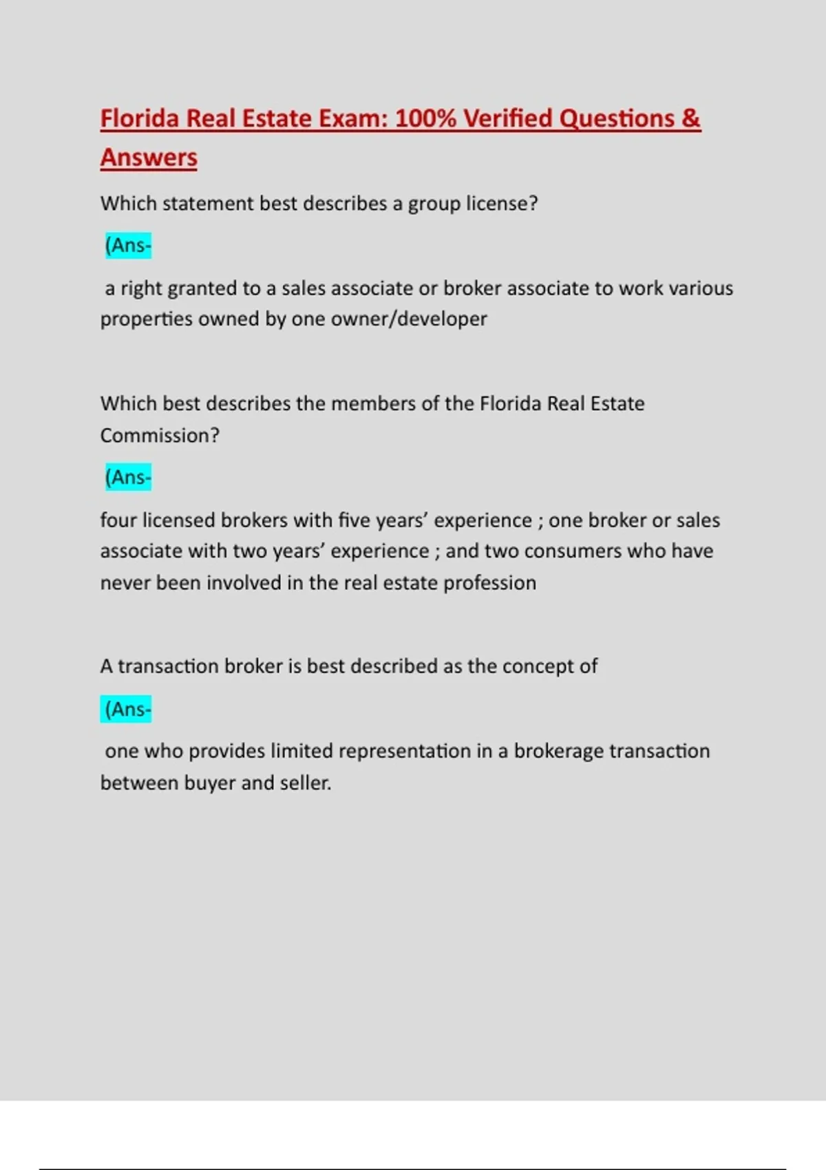 Which best describes the members of the Florida Real Estate