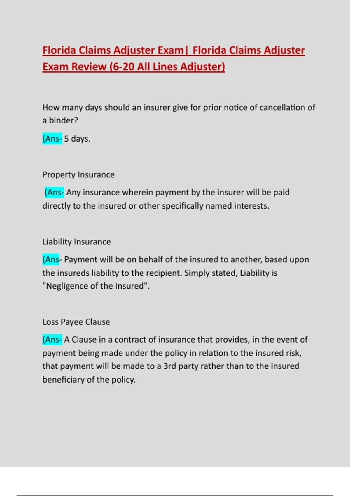 Exam Review (6-20 All Lines Adjuster)