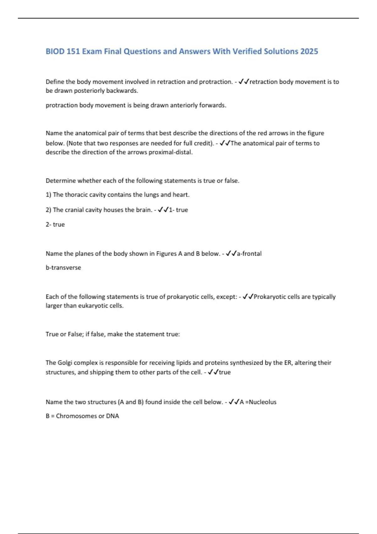 BIOD 151 Exam Final Questions and Answers With Verified Solutions 2025