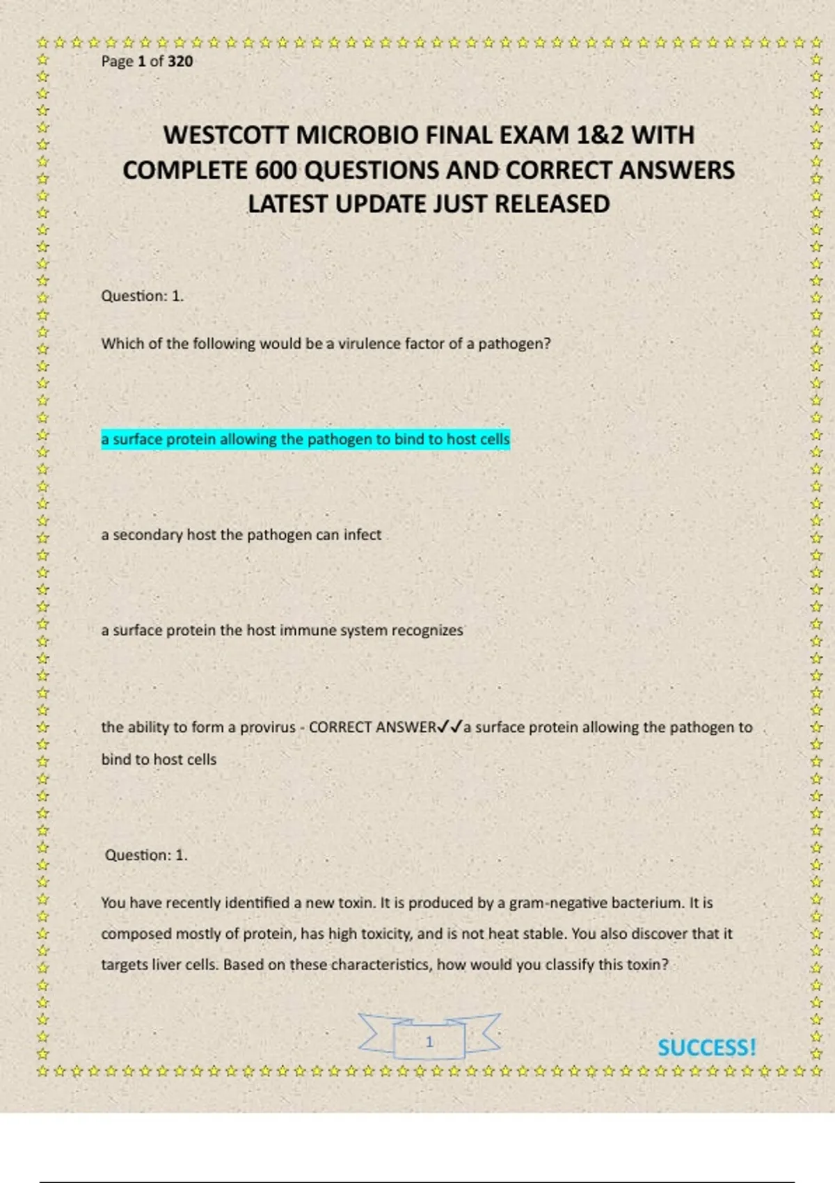 WESTCOTT MICROBIO FINAL EXAM 1&2 WITH