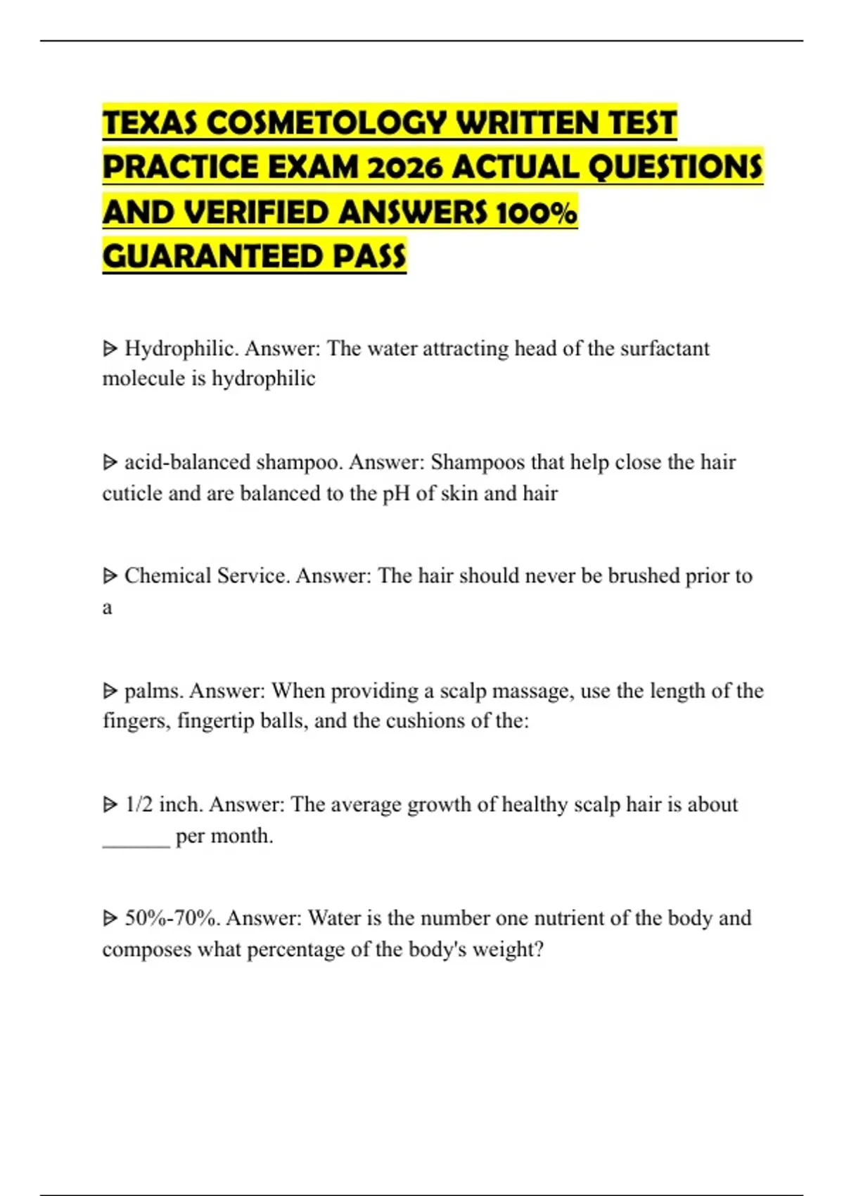 TEXAS COSMETOLOGY WRITTEN TEST PRACTICE EXAM 2026 ACTUAL QUESTIONS AND VERIFIED ANSWERS 100% GUARANTEED PASS