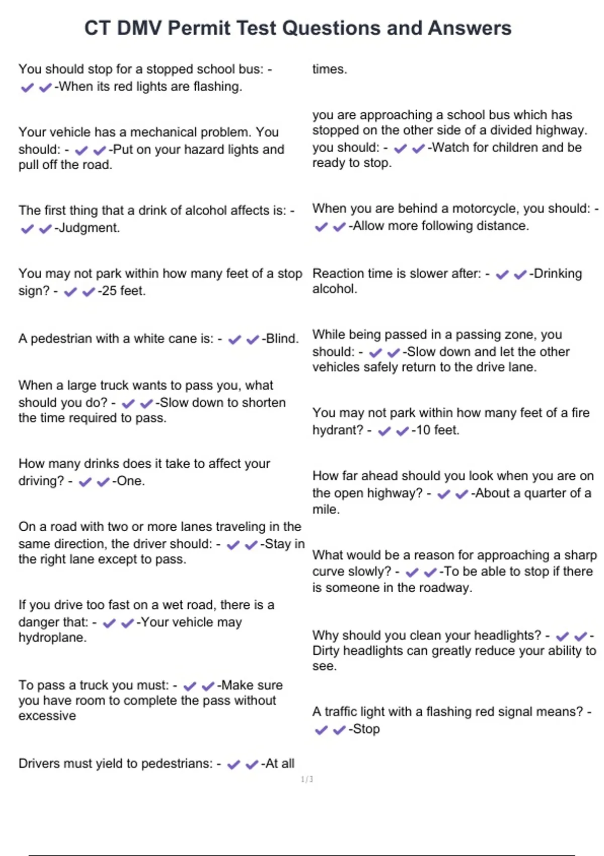 CT DMV Permit Test Questions and Answers