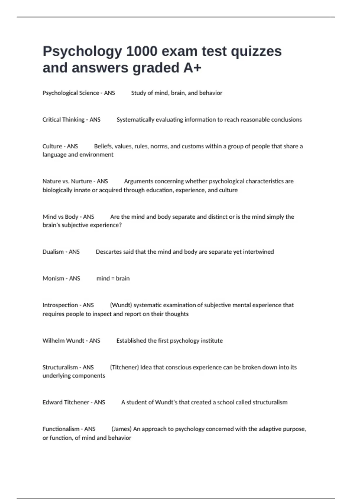 Psychological Science - ANS✅✅Study of mind, brain, and behavior