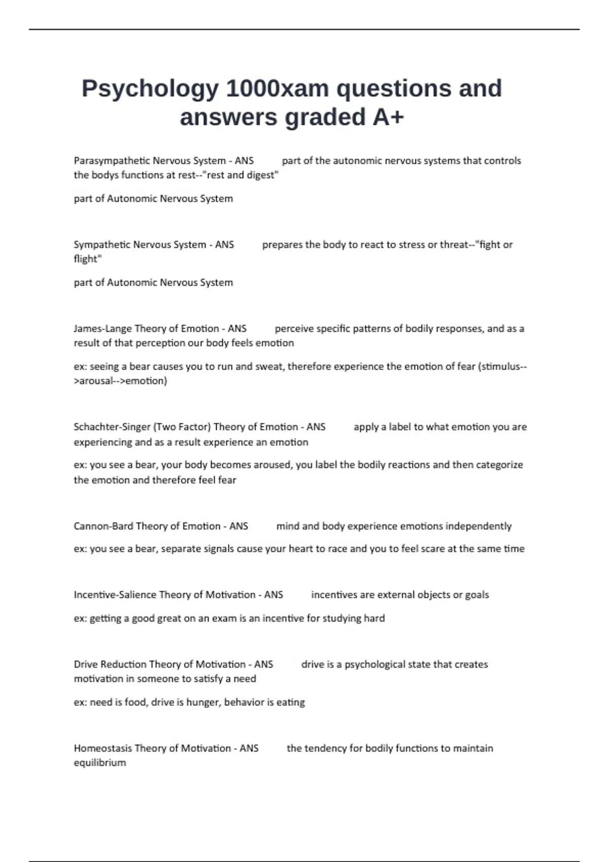 Psychology 1000xam questions and answers graded A+