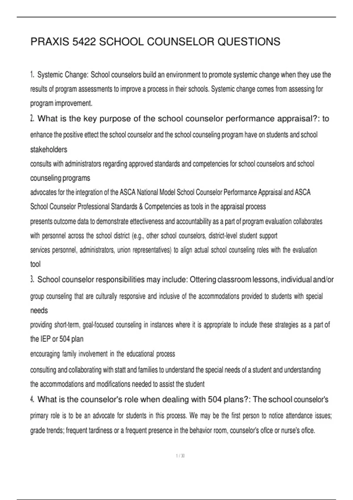 PRAXIS 5422 SCHOOL COUNSELOR QUESTIONS 2025/2026