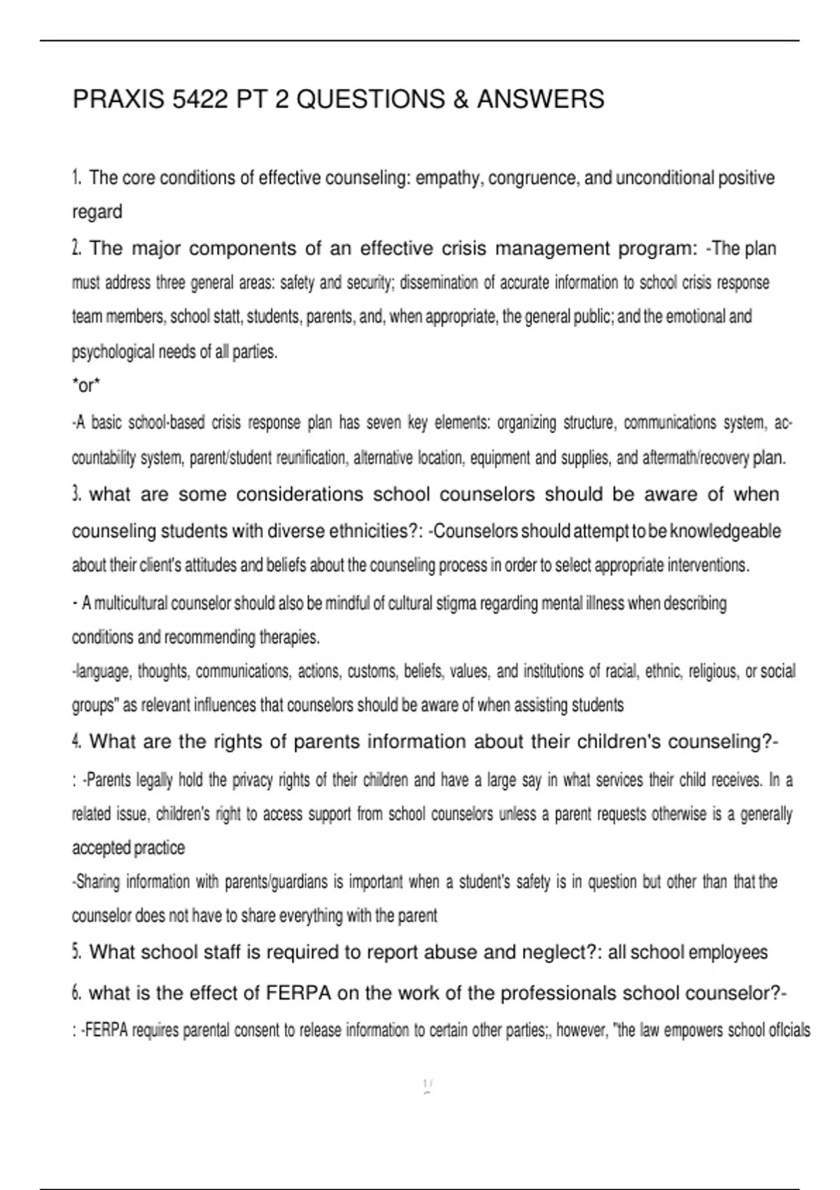 PRAXIS 5422 PT 2 QUESTIONS & ANSWERS