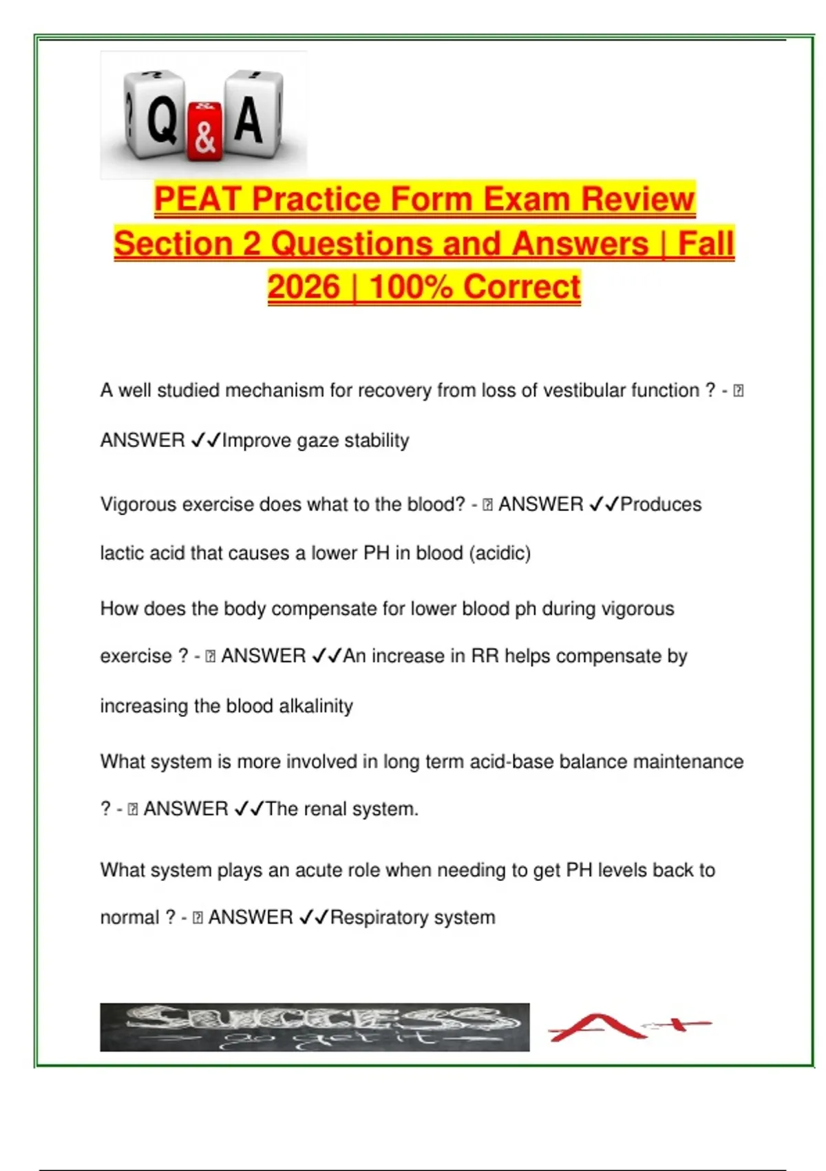 exercise ? - 🧠 ANSWER ✔✔An increase in RR helps compensate by