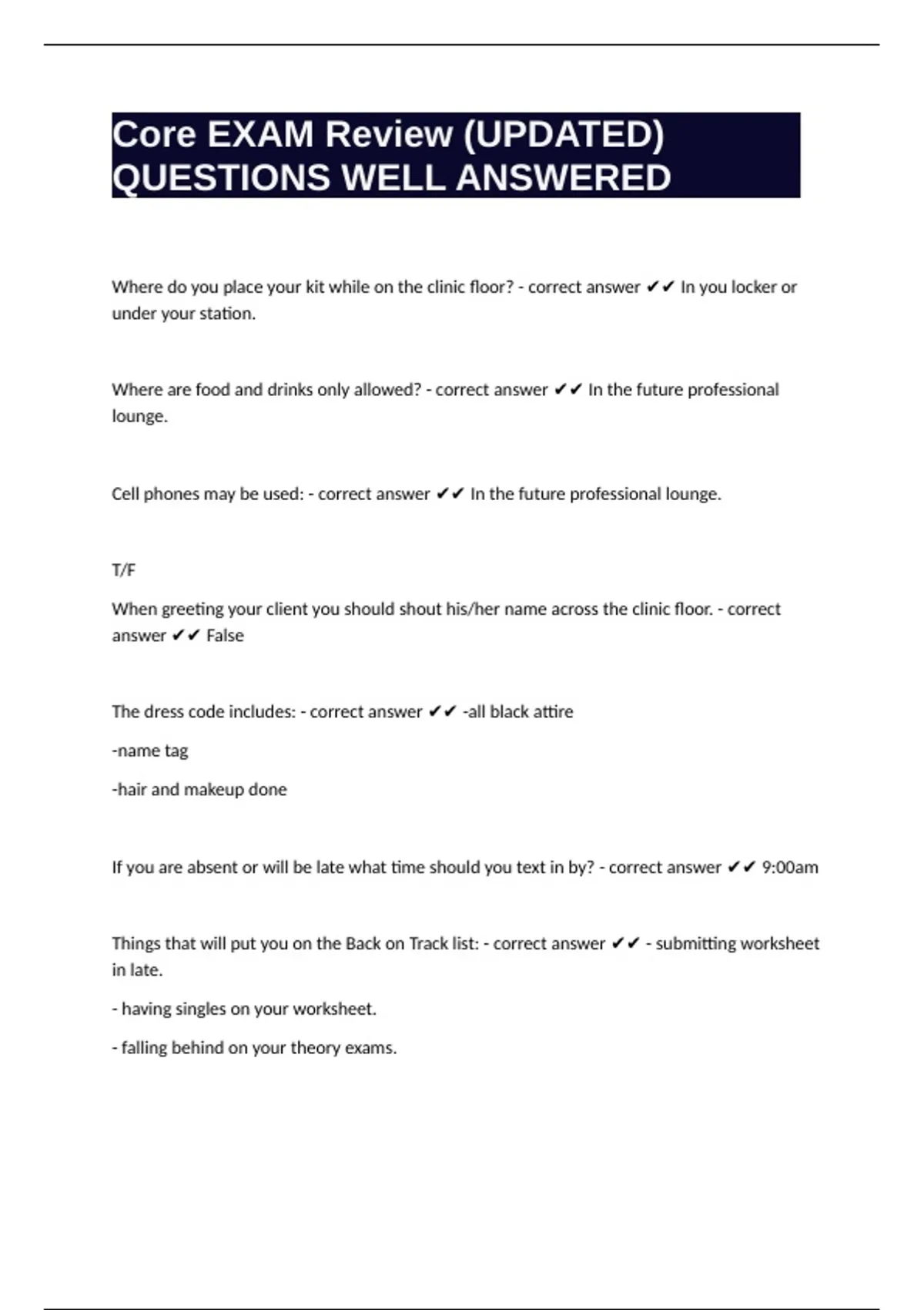 Where do you place your kit while on the clinic floor? - correct answer ✔✔ In you locker or