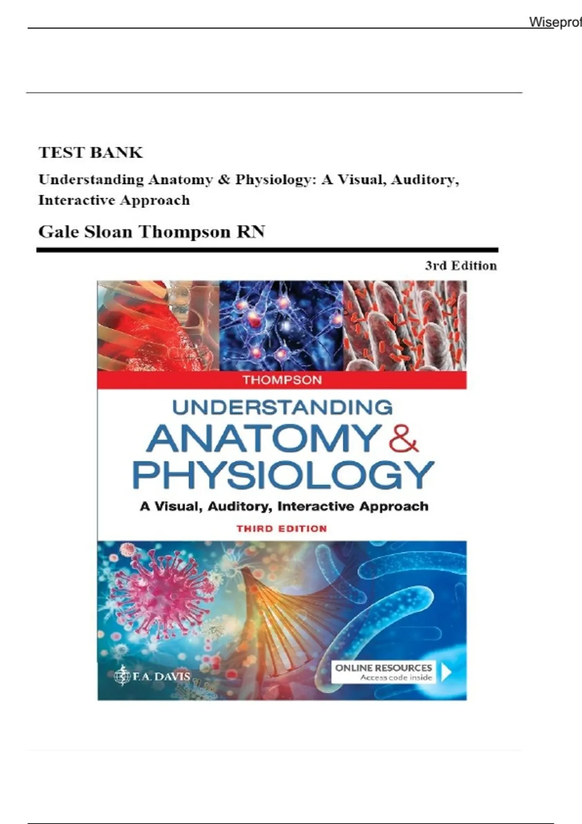 Test Bank for Understanding Anatomy and Physiology 3rd Edition | Gale Sloan Thompson | Verified Chapters 1–25 | Complete 2025/2026 Version