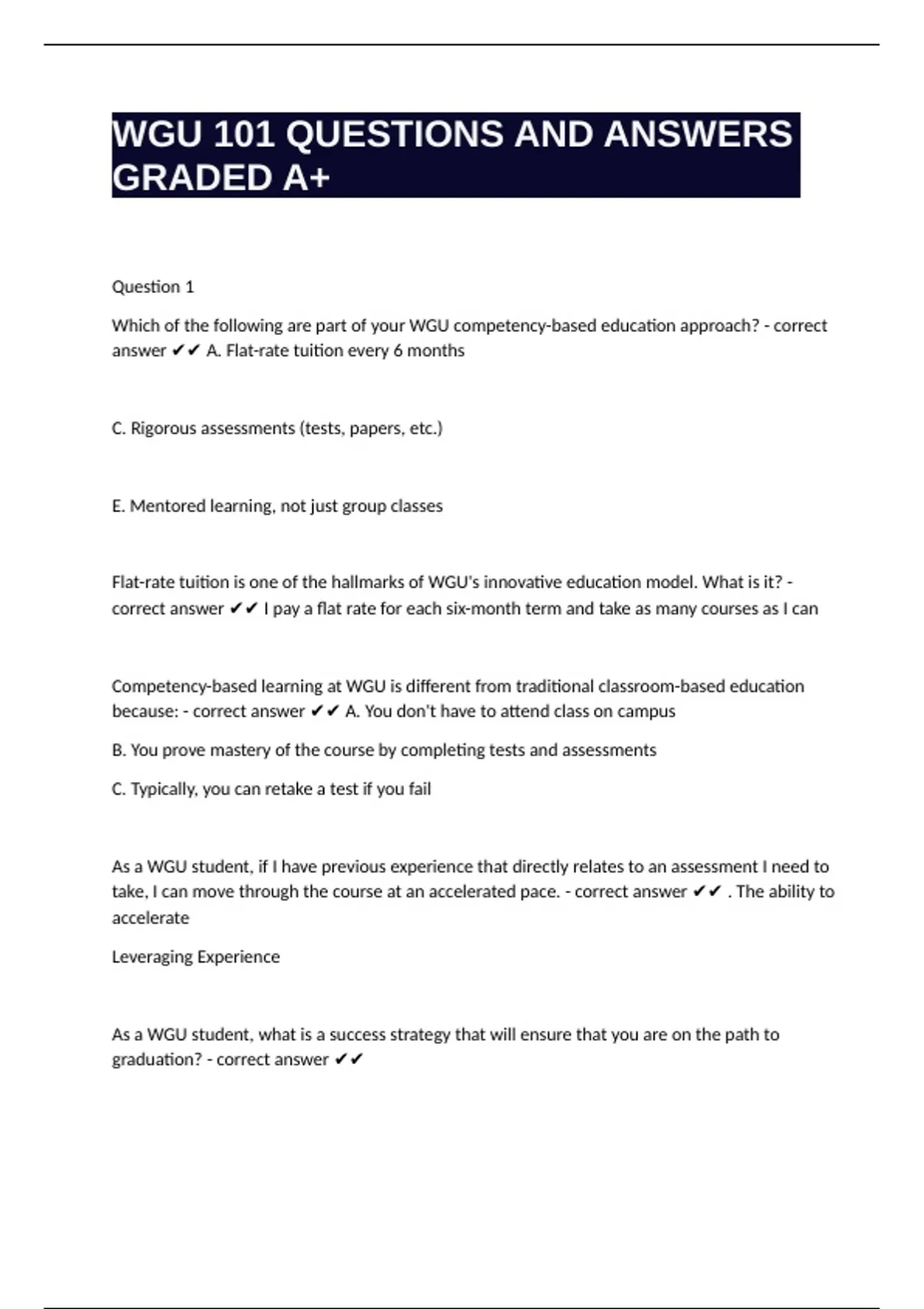 take, I can move through the course at an accelerated pace. - correct answer ✔✔ . The ability to