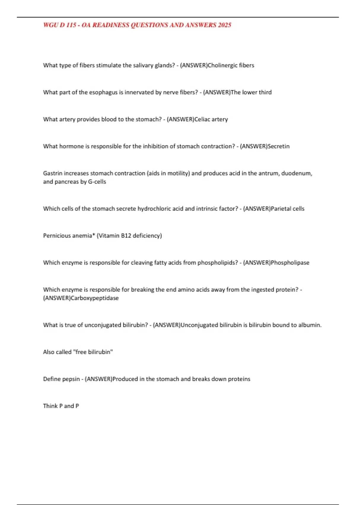 , WGU D 115 - OA READINESS QUESTIONS AND ANSWERS 2025