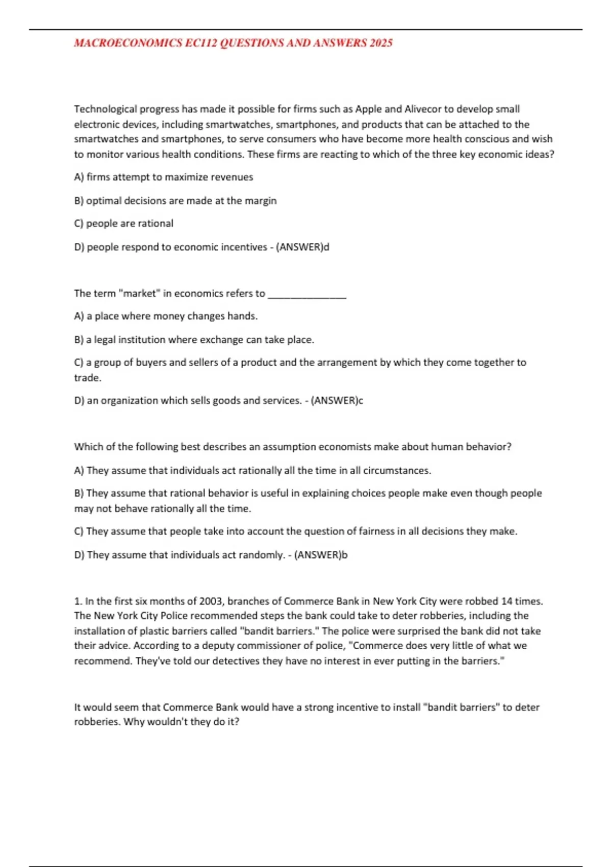 ,MACROECONOMICS EC112 QUESTIONS AND ANSWERS 2025