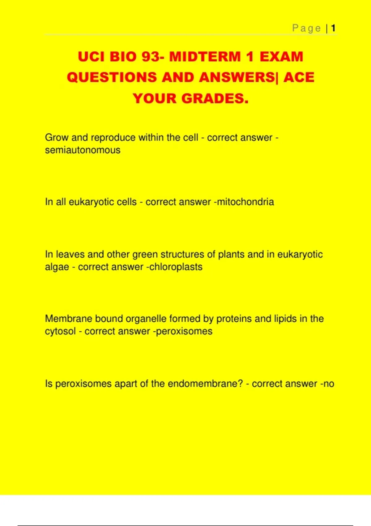 UCI BIO 93- MIDTERM 1 EXAM QUESTIONS AND ANSWERS| ACE YOUR GRADES.