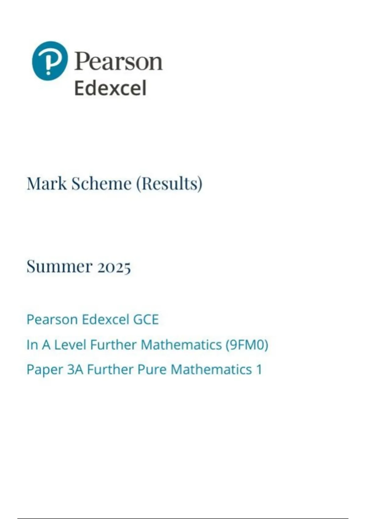 Pearson Edexcel a level Further Mathematics |final mark scheme |2025|9FM0/3a