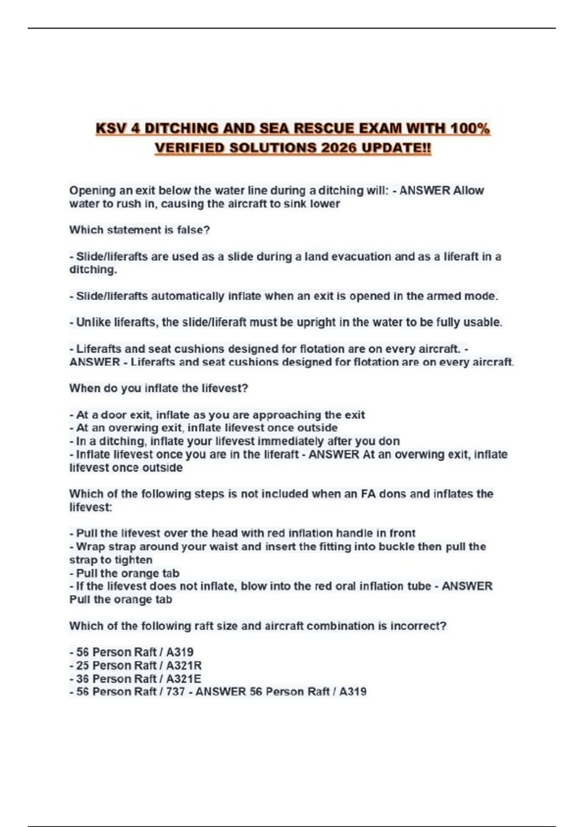 KSV 4 DITCHING AND SEA RESCUE EXAM WITH 100% VERIFIED SOLUTIONS 2026 UPDATE!!...