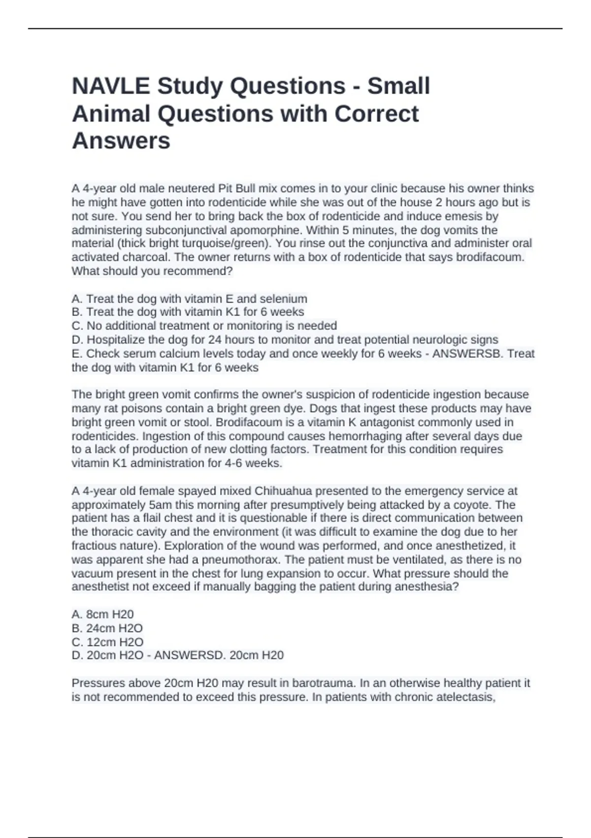 D. 20cm H2O - ANSWERSD. 20cm H20
