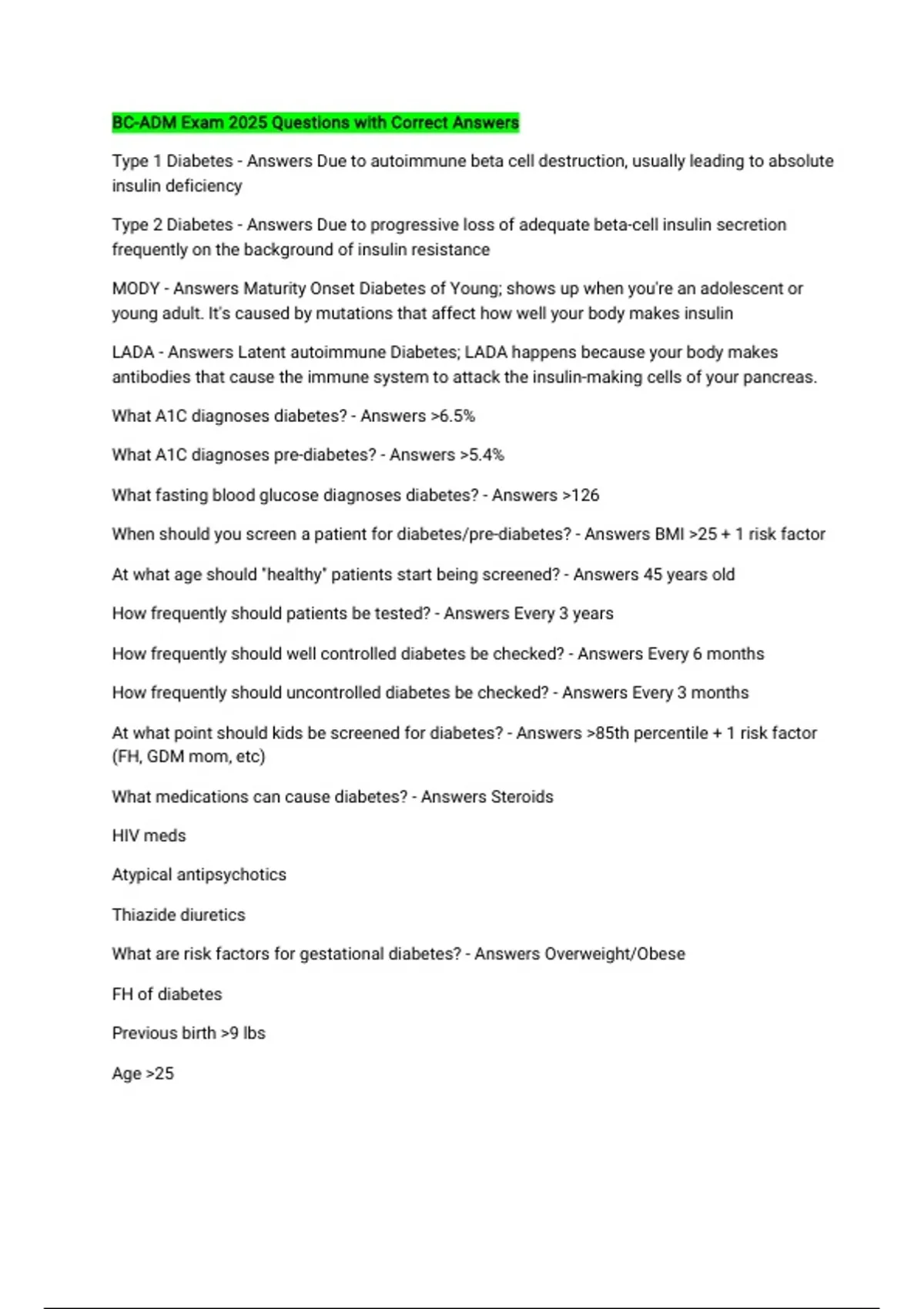When should you screen a patient for diabetes/pre-diabetes? - Answers BMI >25 + 1 risk factor