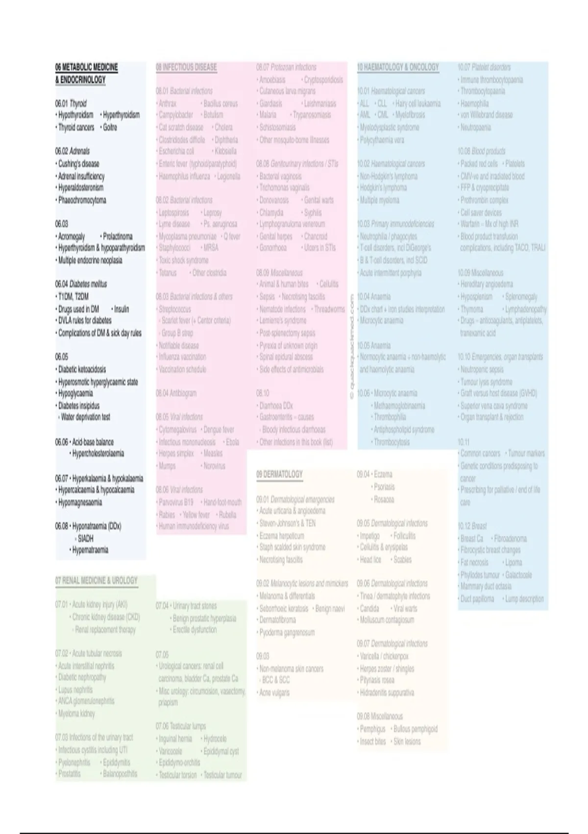 • Diabetic ketoacidosis • Vaccination schedule • Side effects of antimicrobials and haemolytic anaemia • Neutropenic sepsis