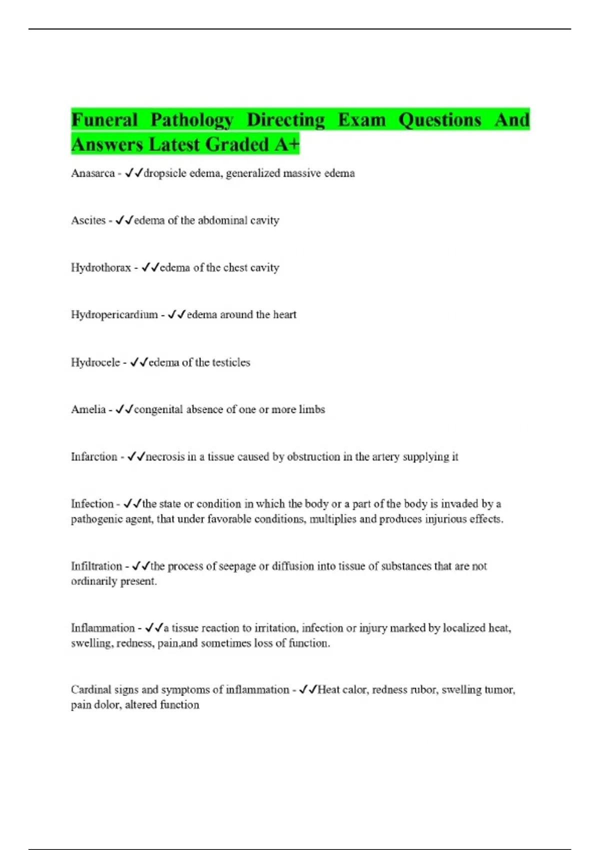 Funeral Pathology Directing Exam Questions And Answers Latest Graded A+