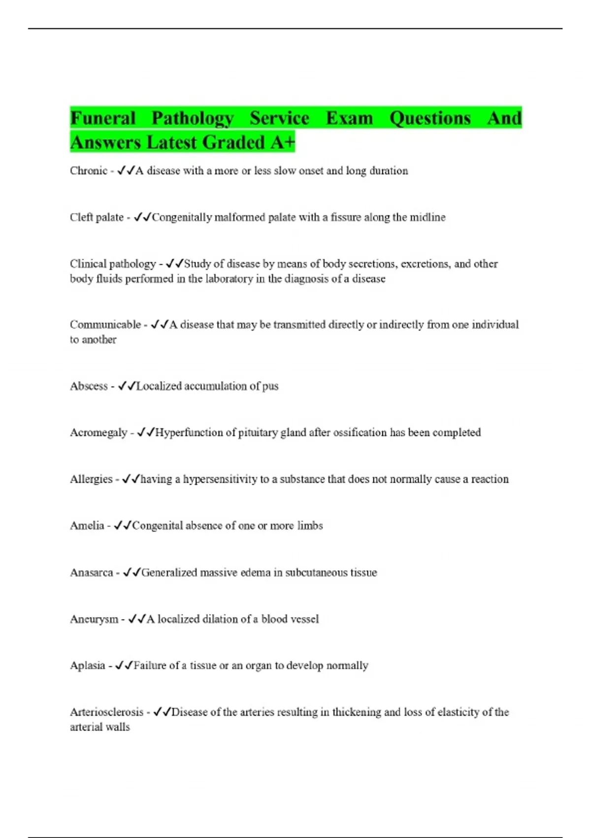 Funeral Pathology Bundled Exam with 100% correct answers
