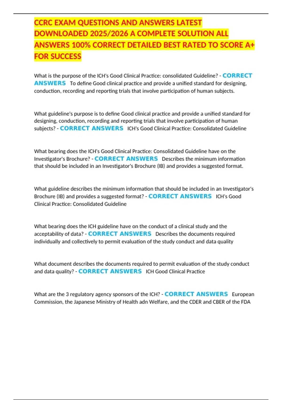 CCRC EXAM QUESTIONS AND ANSWERS LATEST DOWNLOADED 2025/2026 A COMPLETE SOLUTION ALL ANSWERS 100% CORRECT DETAILED BEST RATED TO SCORE A+ FOR SUCCESS