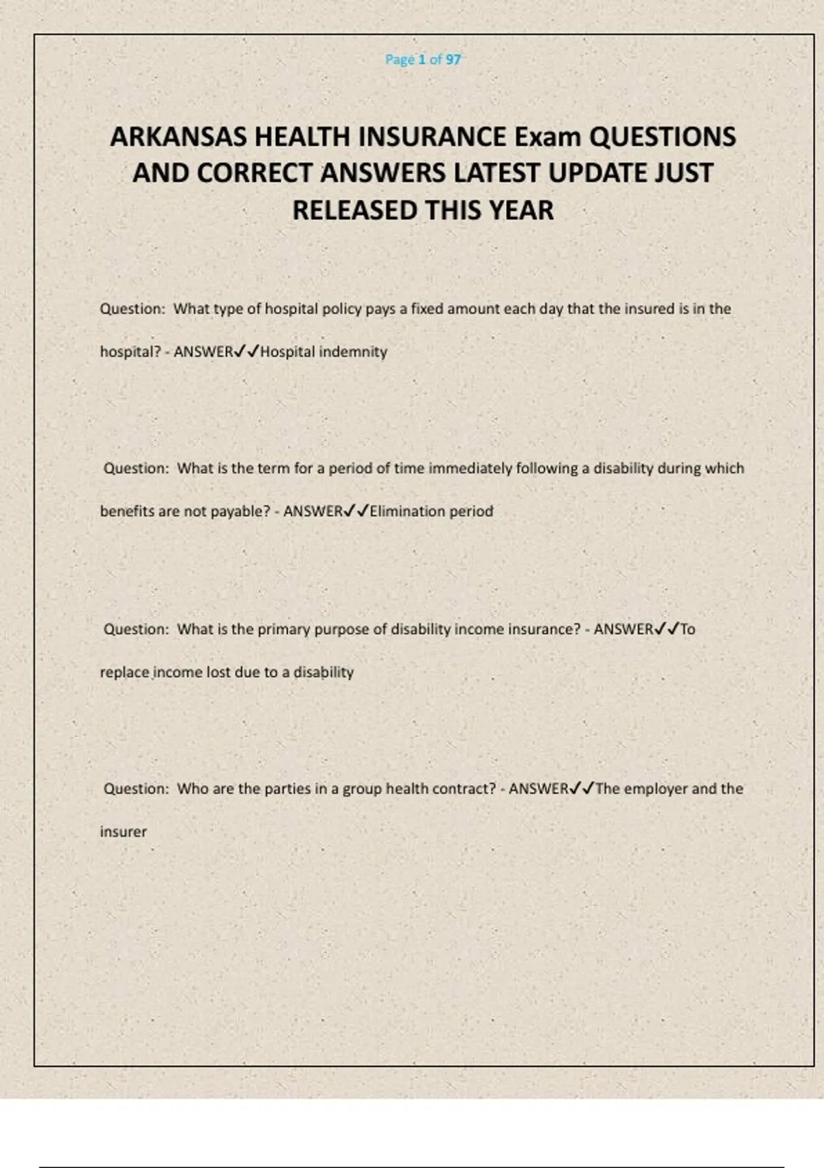 ARKANSAS HEALTH INSURANCE Exam QUESTIONS