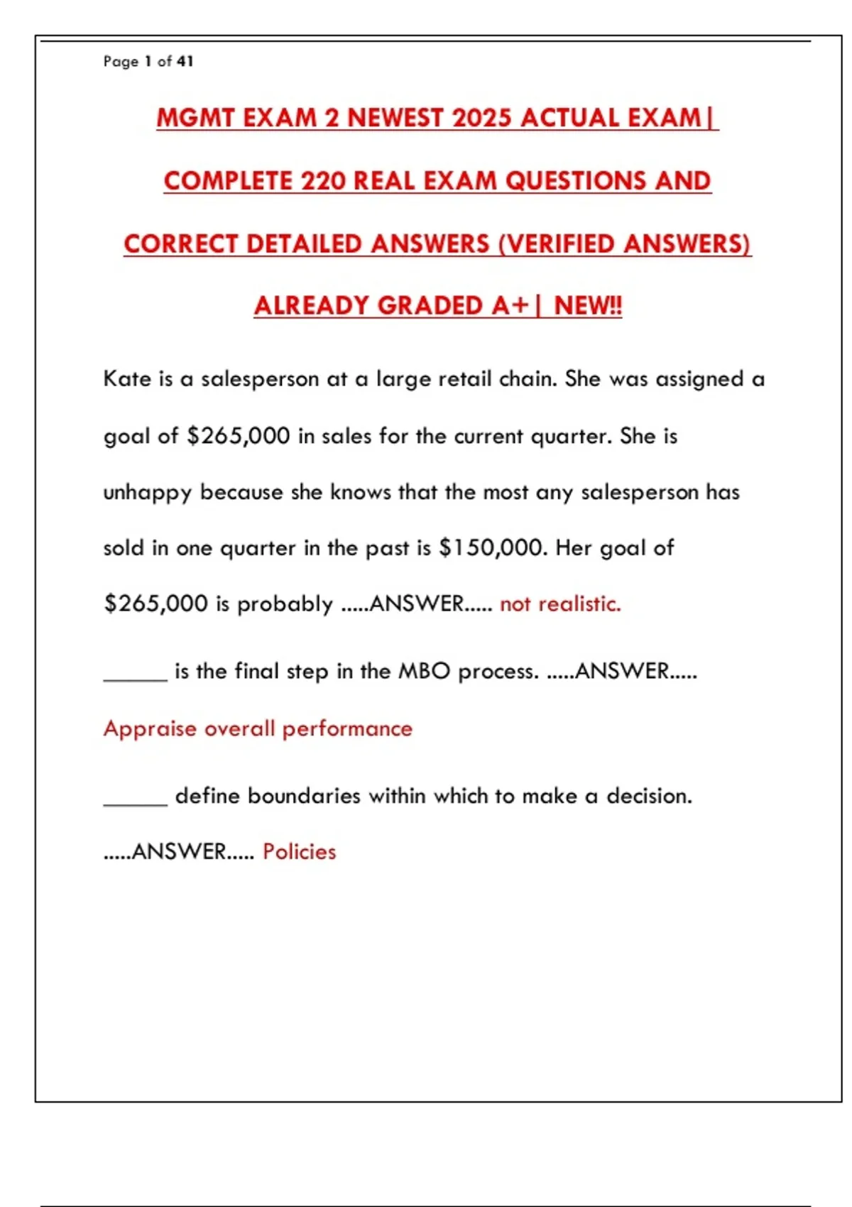 MGMT Exam 2 2025: Actual Exam Questions & Answers