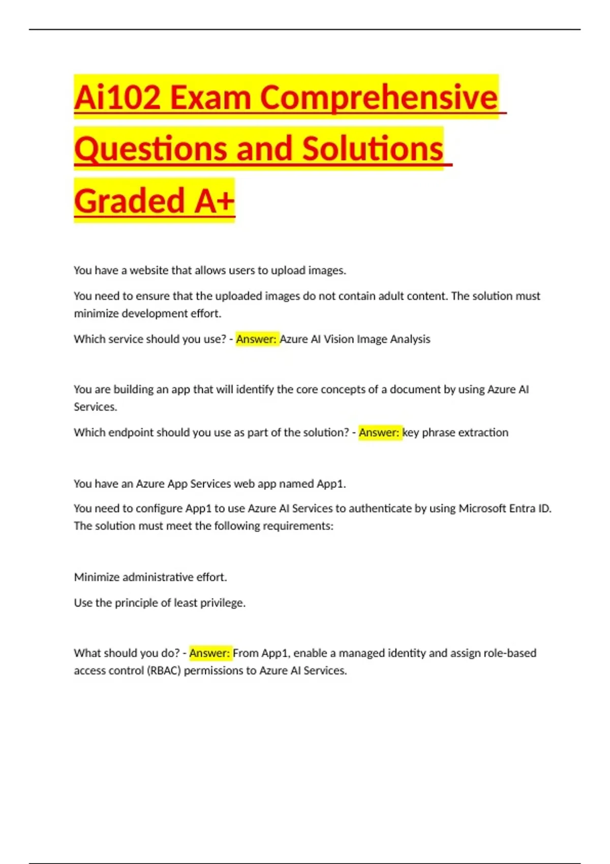 Ai102 Exam Comprehensive Questions and Solutions Graded A+