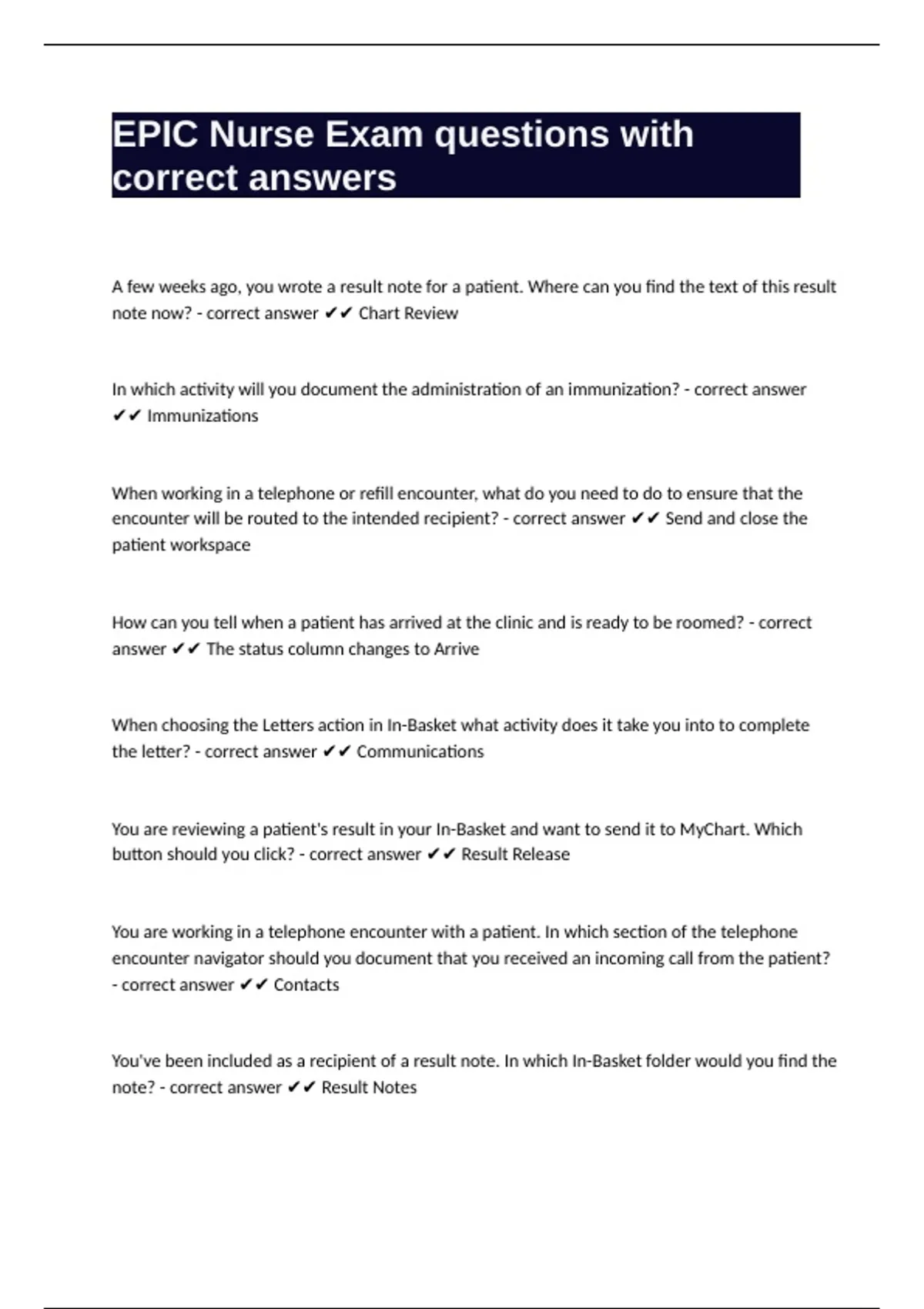 note? - correct answer ✔✔ Result Notes