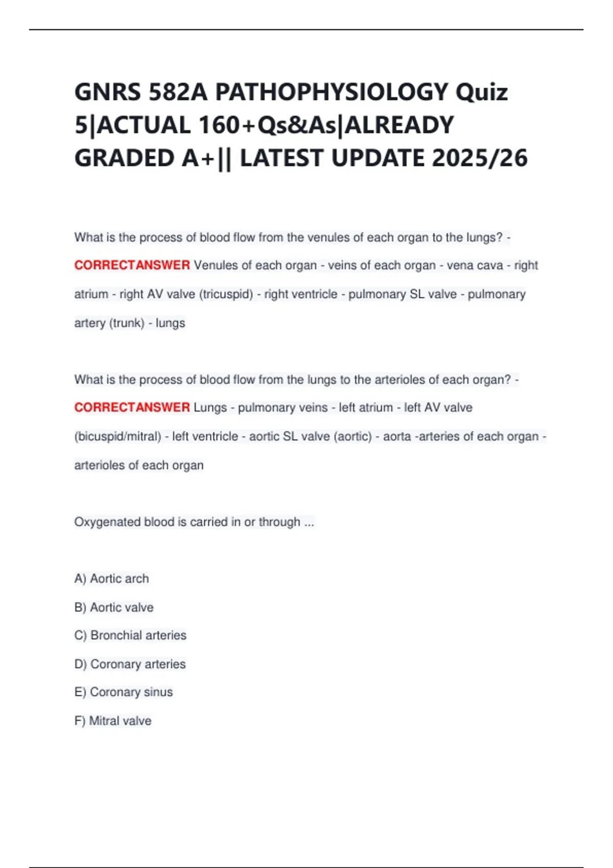 GNRS 582A PATHOPHYSIOLOGY Quiz 5|ACTUAL 160+Qs&As|ALREADY GRADED A+|| LATEST UPDATE 2025/26