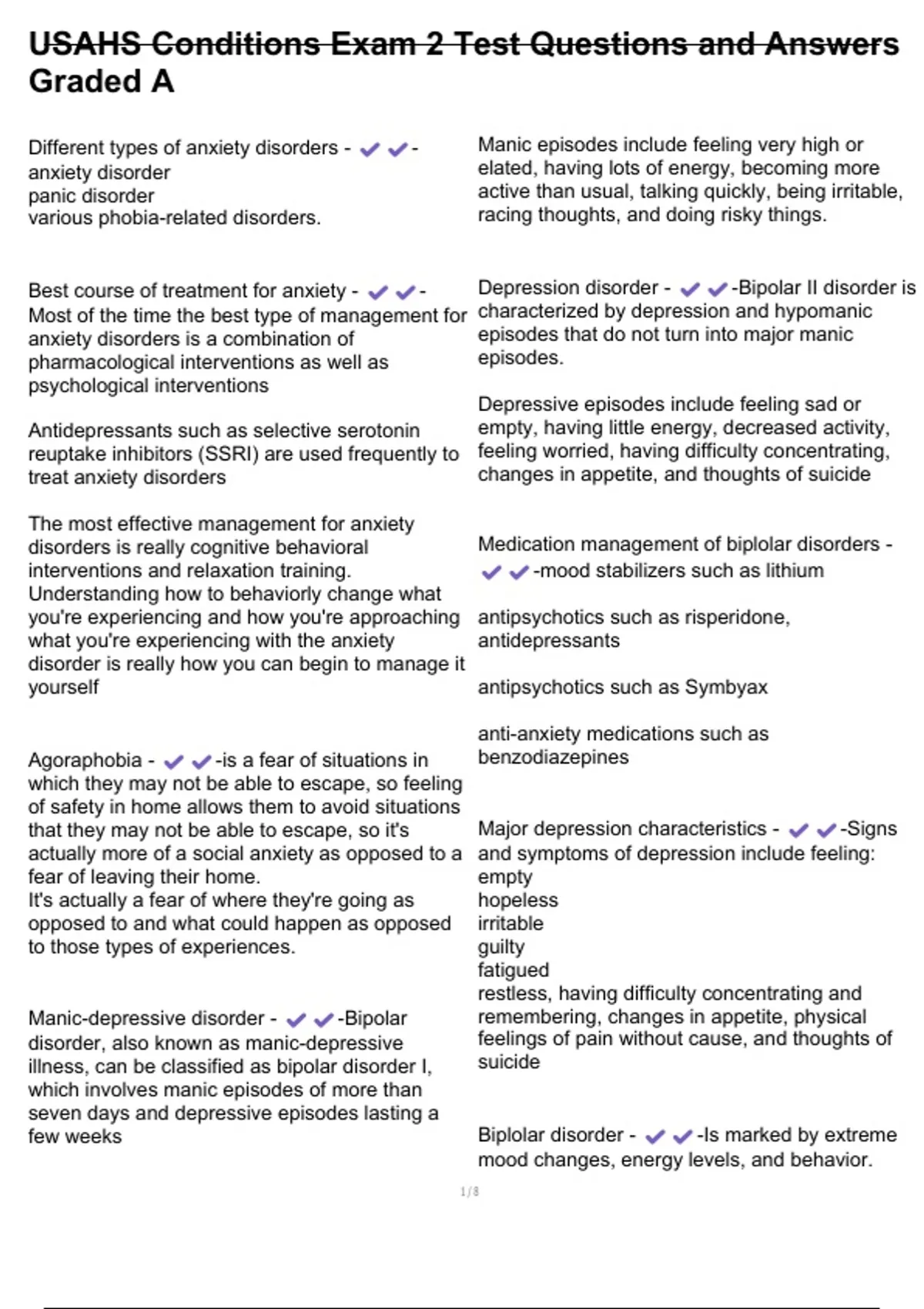 , USAHS Conditions Exam 2 Test Questions and Answers