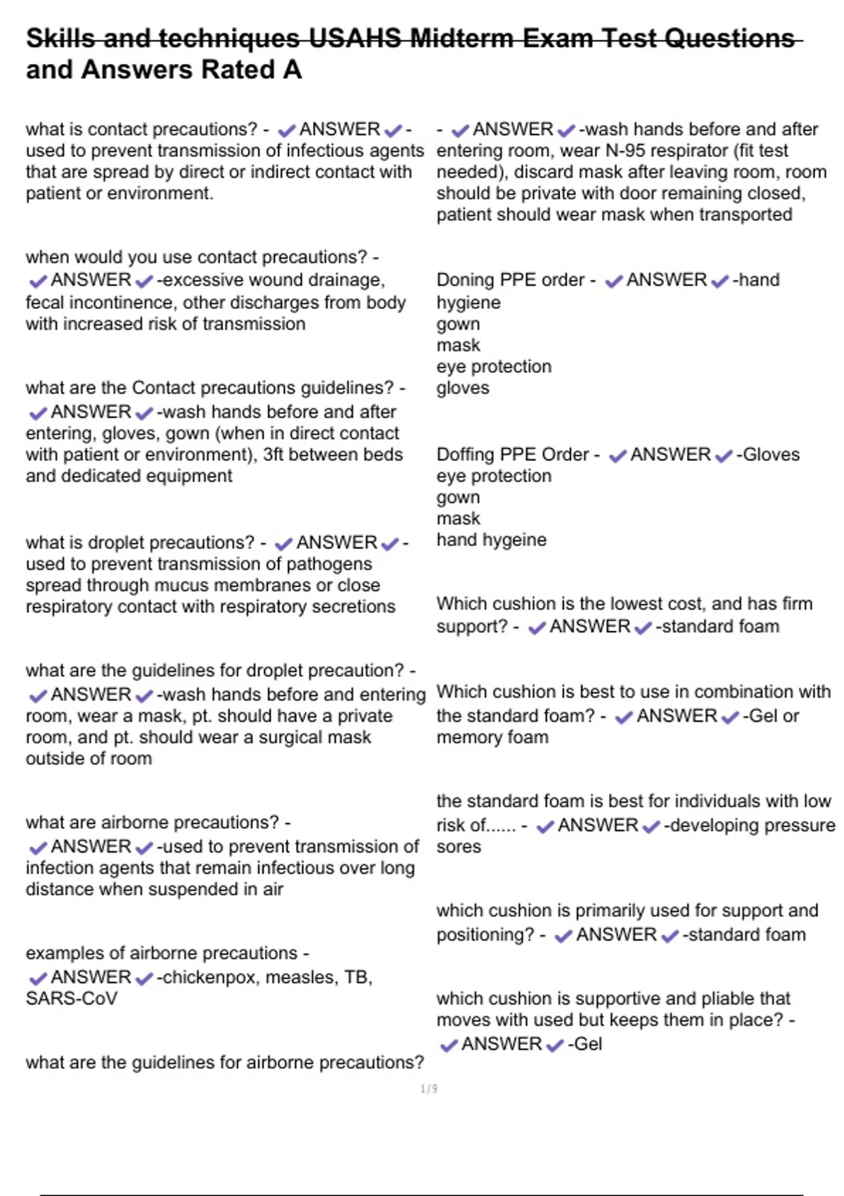 , Skills and techniques USAHS Midterm Exam Test Questions